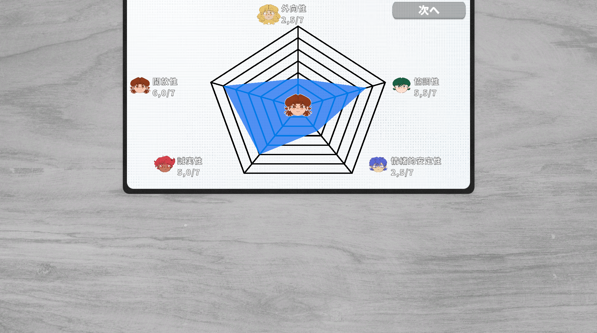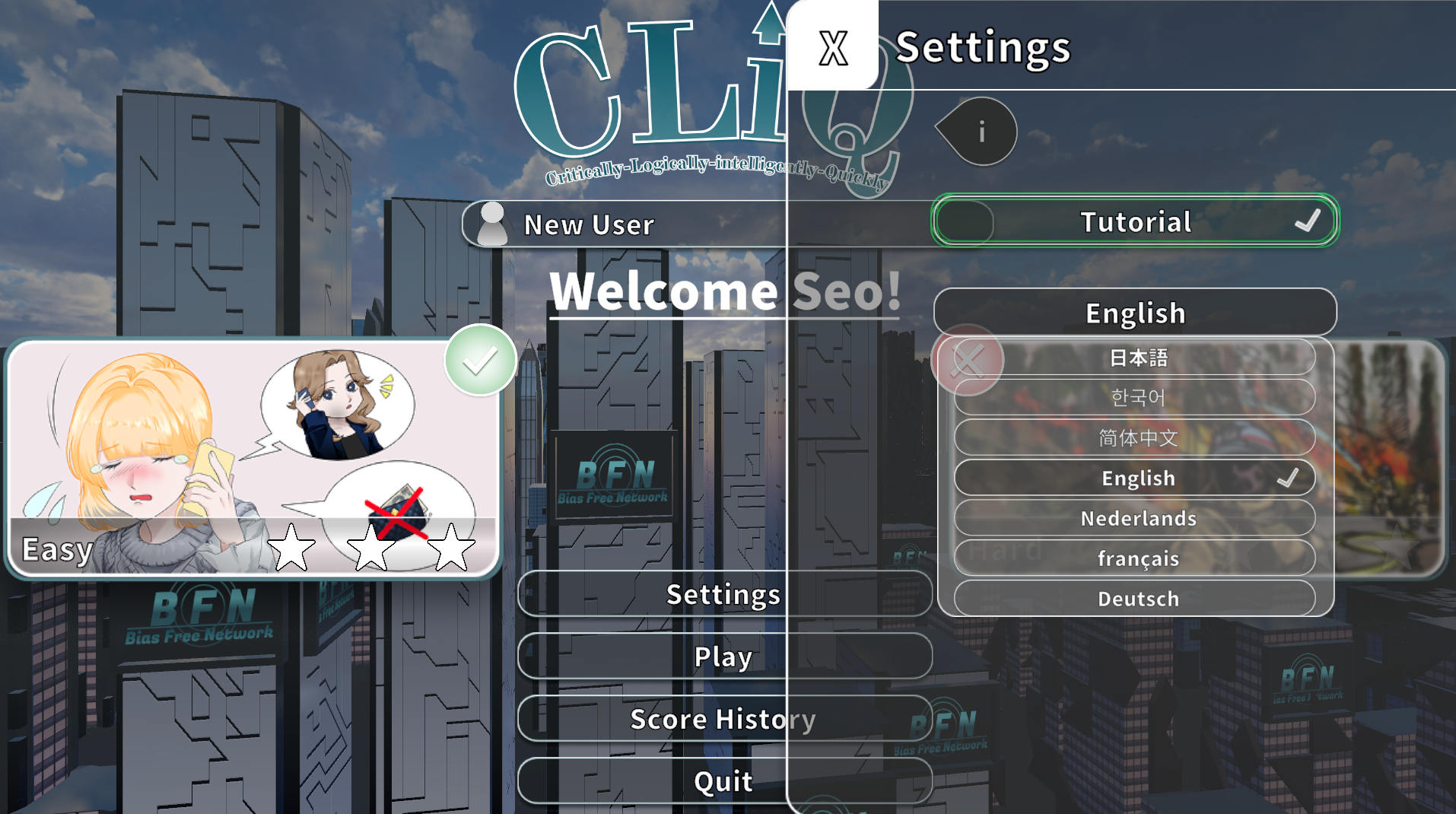 タイトル画面では現在のコンテンツで用いられる認知バイアスの一覧が確認でき,これを見ることによってゲームを有利に進められる.