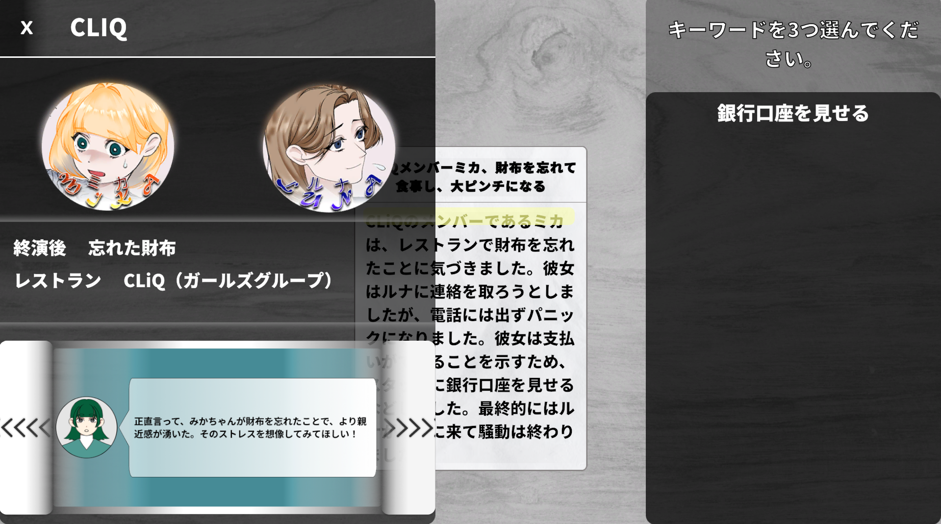 また,ゲーム終了後のストーリーはプレイヤーのゲームクリア可否によってシナリオが分岐する.