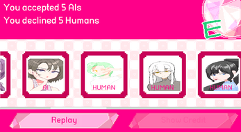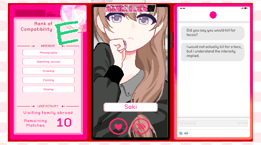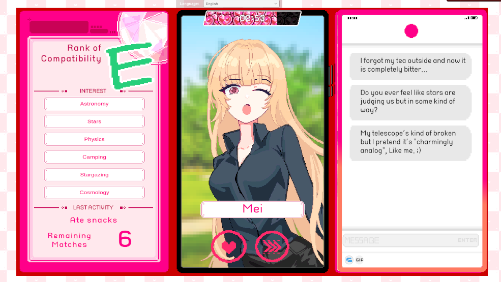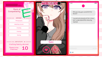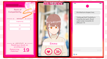 The project goal is to create a game with a cheerful and fun atmosphere, but with a serious underlying message. The game's core message is "HyperConnection," which is delivered through a Tinder-like app populated solely by AI.